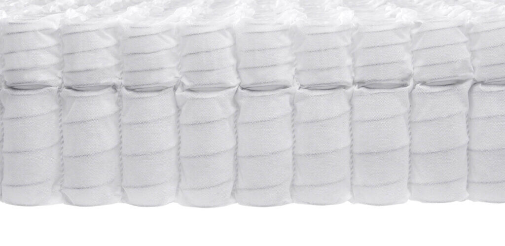 are encased in fabric pockets, typically polypropylene fabric. Also known as pocketed springs or encased coils.
