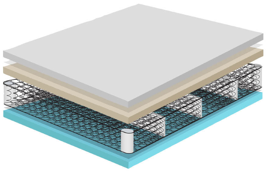 Once primarily used as the core of innerspring mattresses, coils can now be found throughout the mattress, providing both support and comfort from the center to the edges to the topmost layers. Zoned innerspring units provide support for different parts of the body. Pocketed coils—fabric-encased springs that have become the dominant coil type in today’s innerspring and hybrid mattresses—help prevent motion transfer between sleepers.