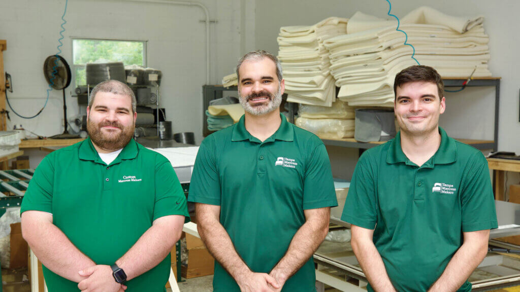 A few months later, Noblit bought Custom Mattress Makers from his dad for a nominal $1. Today, the business is based in Clearwater, Florida, with Noblit at its helm, brothers Conner and Jake and Noblit’s wife, Brenna, also on staff, dad Joe still stopping by to help the family business, and uncle Bill leading one of the brand’s two retail stores in Southwest Florida.