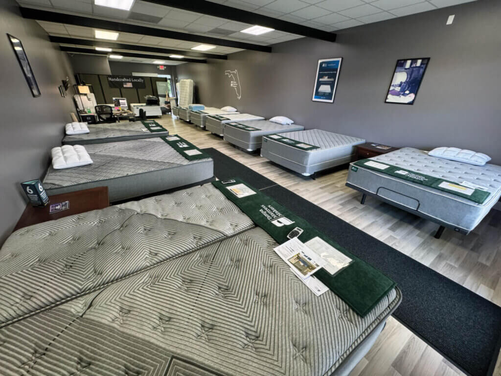 Clearwater also would become a great customer base when Noblit decided to open a retail showroom, since the Tampa area is a hub for boaters, RV owners, and snowbirds traveling from the Northeast to spend winters in sunny Florida. In addition, Florida customers were regularly reaching out to ask if they could try out the mattresses in person. “We got enough of these calls where we said, ‘You know what, we’re going to have to open something,’” says Noblit. “It started with a small store in the front of our factory, and then it expanded out to its own location.”