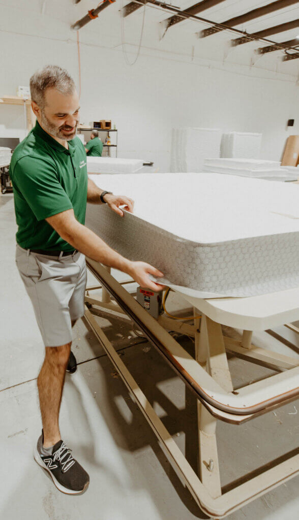It’s important to note that whether a customer chooses a mattress at one of the Tampa Bay showrooms or goes online to custommattressmakers.com, each mattress is made to order for each customer. “We don’t have any items that are sitting on a shelf somewhere, collecting dust,” says Noblit. “Everything is made as a customer orders it. Our normal lead time for special sizes [is] only about two weeks to build those, and then standard sizes from our stores, [it’s] usually a week or less that those are finished.”