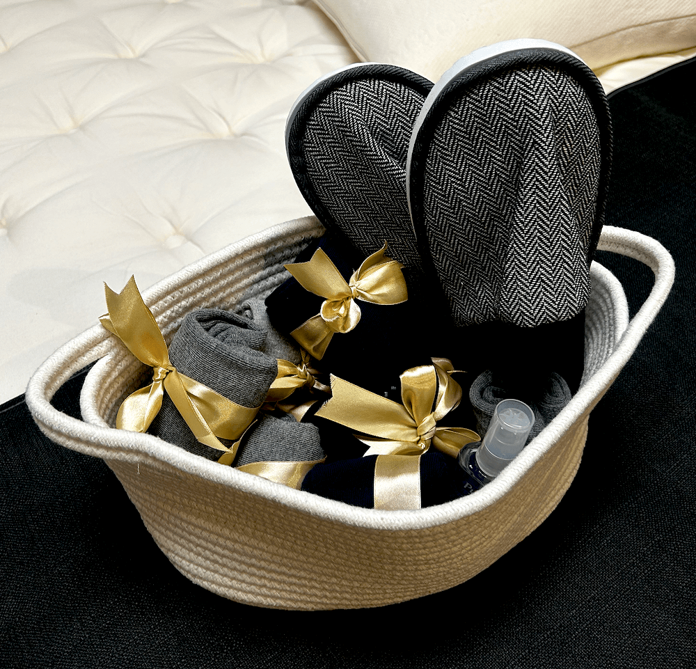 The first thing one notices when entering Golden Dreams Mattress is the lighting. Rather than harsh fluorescents turned up to their full wattage, overhead lighting is dimmed and curtains over the windows block the bright California sunshine. Guests are encouraged to take off their shoes and select complimentary socks and slippers from a basket near the entryway. (They are for the customers to keep.) The next step isn’t rest-testing beds, but instead, sitting down in zero-gravity massage chairs for an eight-minute massage. (Shoppers are free to decline, of course, but Cangemi says that has only happened once.)