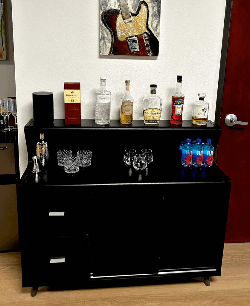 While shoppers enjoy the massage, Cangemi offers complimentary beverages from a fully stocked bar. There’s Moet champagne, spirits and also nonalcoholic options like Athletic Brewing Co. beer, water, sodas and sparkling waters.